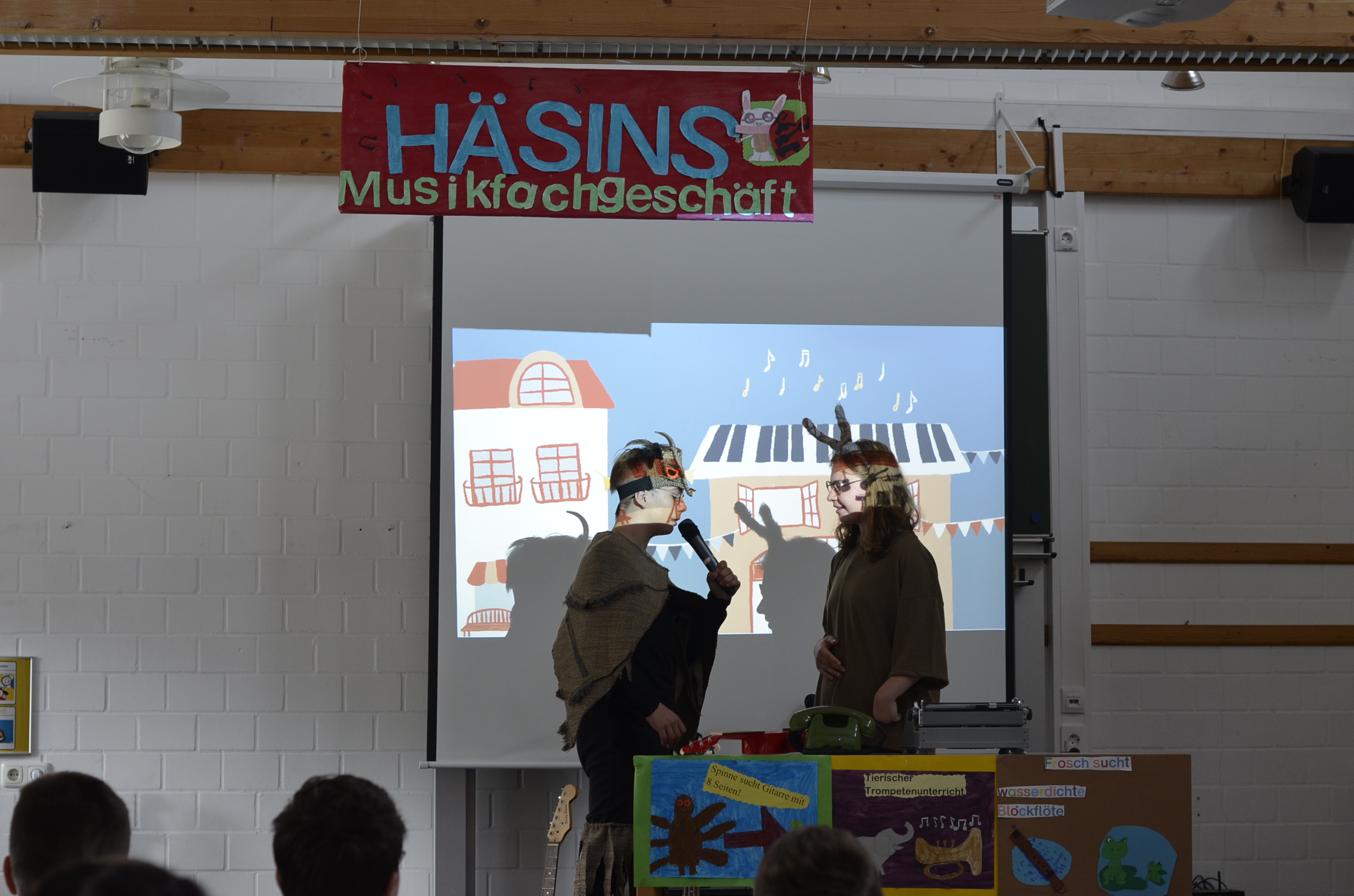 In unserem Sekundarstufenprojekt "MixMax" wurde fleißig an dem Musical "Eule findet den Beat" gearbeitet. Die Schülerinnen und Schüler haben das Bühnenbild gestaltet, die Technik organisiert, Kostüme entworfen und natürlich geprobt, geprobt, geprobt. Es fand ein Auftritt vor den anderen Schülerinnen und Schülern, vor einer Schulklasse der Grundschule Upstalsboom und dem Kollegium sowie für die Eltern und Sorgeberechtigten statt. Ein voller Erfolg, der mit viel Applaus belohnt wurde.